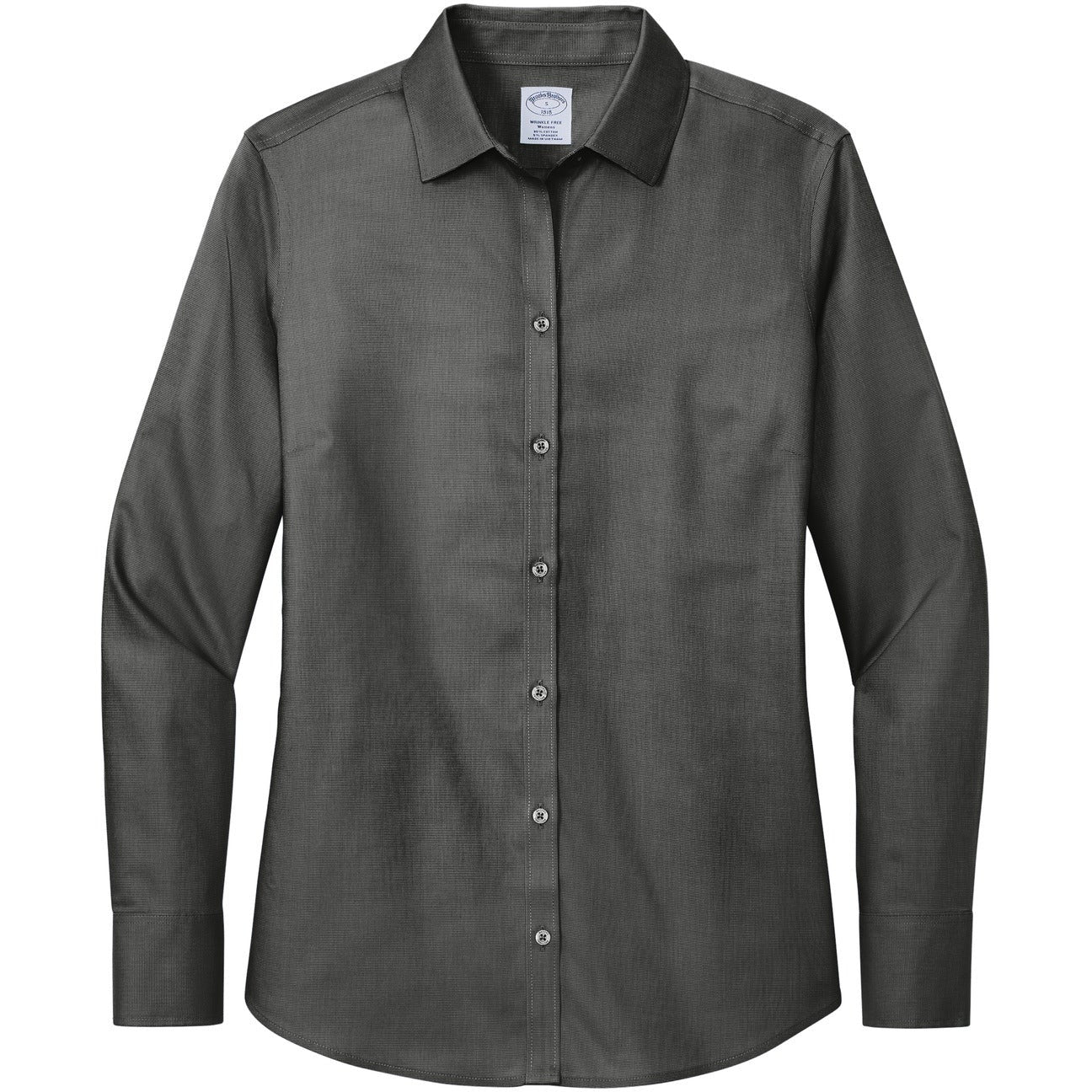Balancing a professional look with business-casual style, our nailhead dress shirt features a subtle two-color pattern and a soft hand. A premium wrinkle-free treatment process keeps it looking sharp and stylish all day. 4-ounce, 95/5 cotton/spandex fine yarn count Open collar Bust darts Back panel darts Taped seams Dyed-to-match buttons with Brooks Brothers logo Rounded, adjustable cuffs