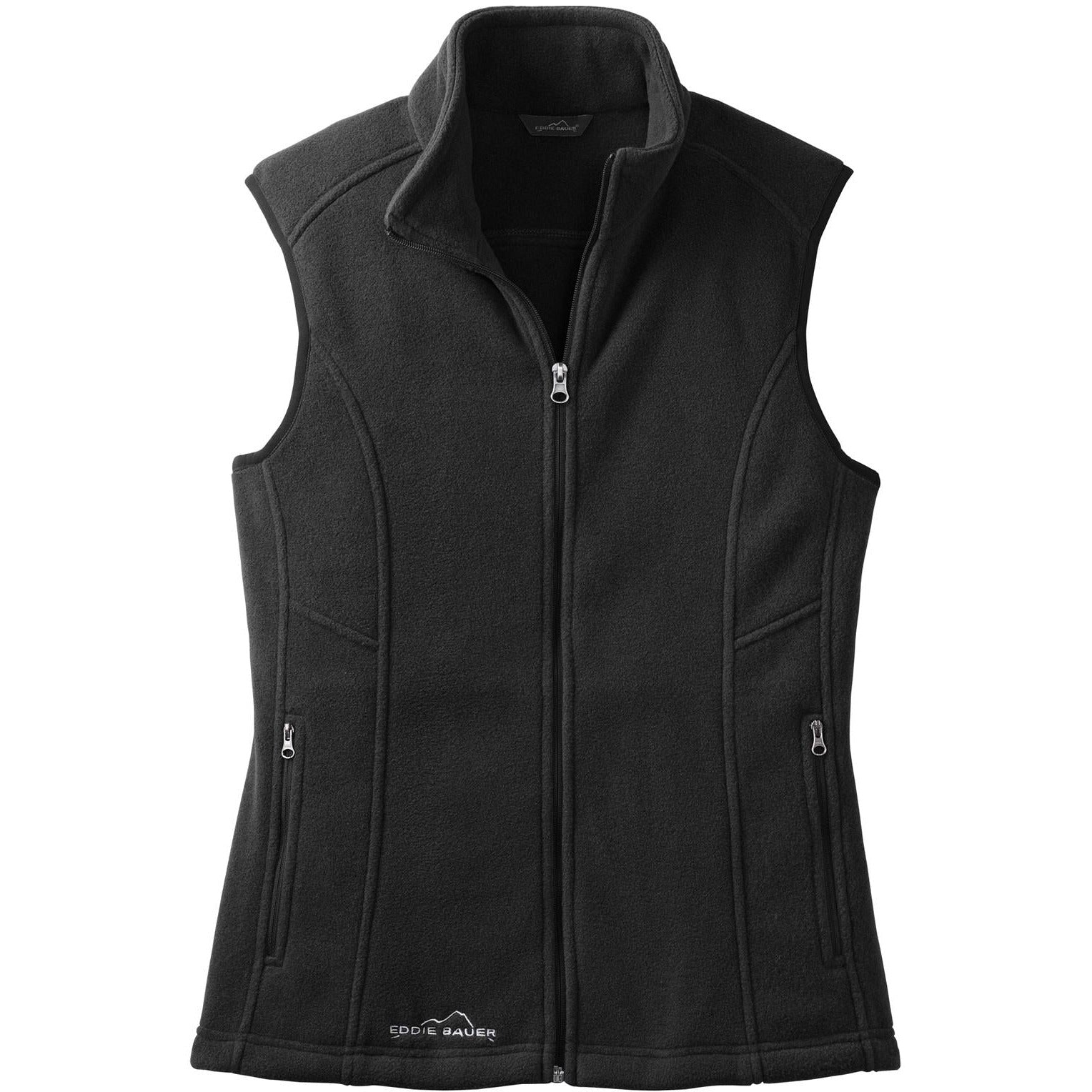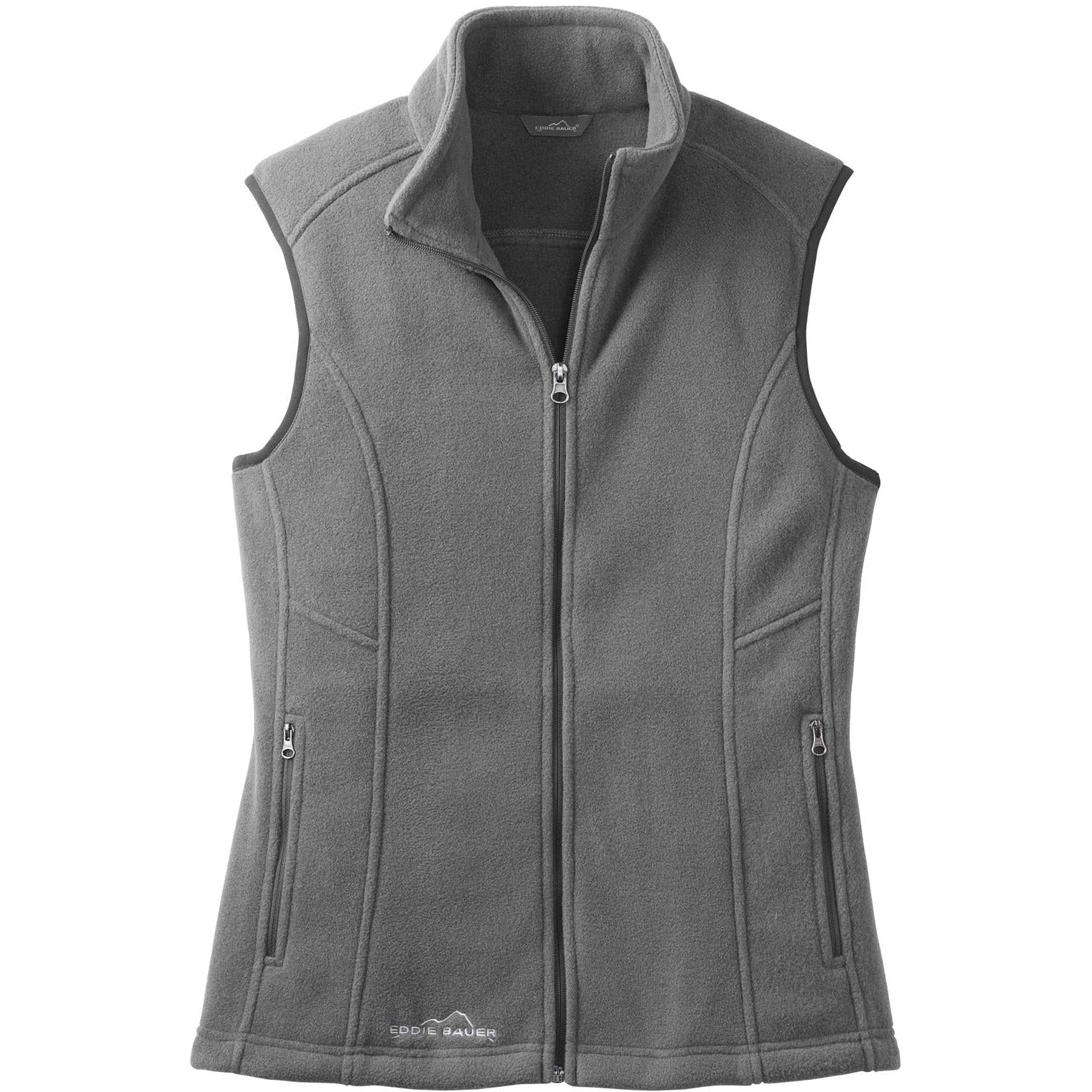 Ward off early morning chills by insulating your core with this soft, cozy vest. Princess seams, dyed-to-match reverse coil zippers, front zippered pockets with tricot lining, binding at armholes and an open hem. Embroidered Eddie Bauer contrast logo on right hem. Made of 6.9-ounce, 100% polyester fleece. Produced using Low Impact Technology (L.I.T.) which uses less dyestuffs, thermal energy and water for enhanced softness, performance and after-care quality.