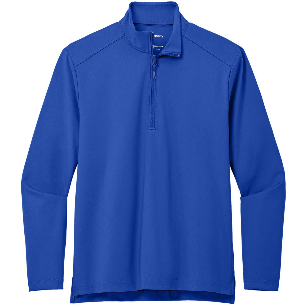 This midweight 1/4-zip stands out in any work or leisure wardrobe. Not only is it easy-to-wear and layerable, but it also boasts superior stretch, snag-resistance, moisture-wicking and UV ray-resistant performance. 7.7-ounce, 89% recycled polyester/11% spandex interlock knit (solids) 7.7-ounce, 81% recycled polyester/8% polyester/11% spandex interlock knit (heathers) Carbon footprint neutralized through the ClimeCo Certified Product Program Snag-resistant Moisture-wicking UPF rating of 50+ Self-piped zipper placket Shoulder piecing detail Dyed-to-match, recycled, reverse coil zipper with silicone-tipped drawcord pull Self-turned cuffs Straight drop tail hem Side vents Tag-free label Due to the nature of 100% polyester performance fabrics, special care must be taken throughout the printing process.