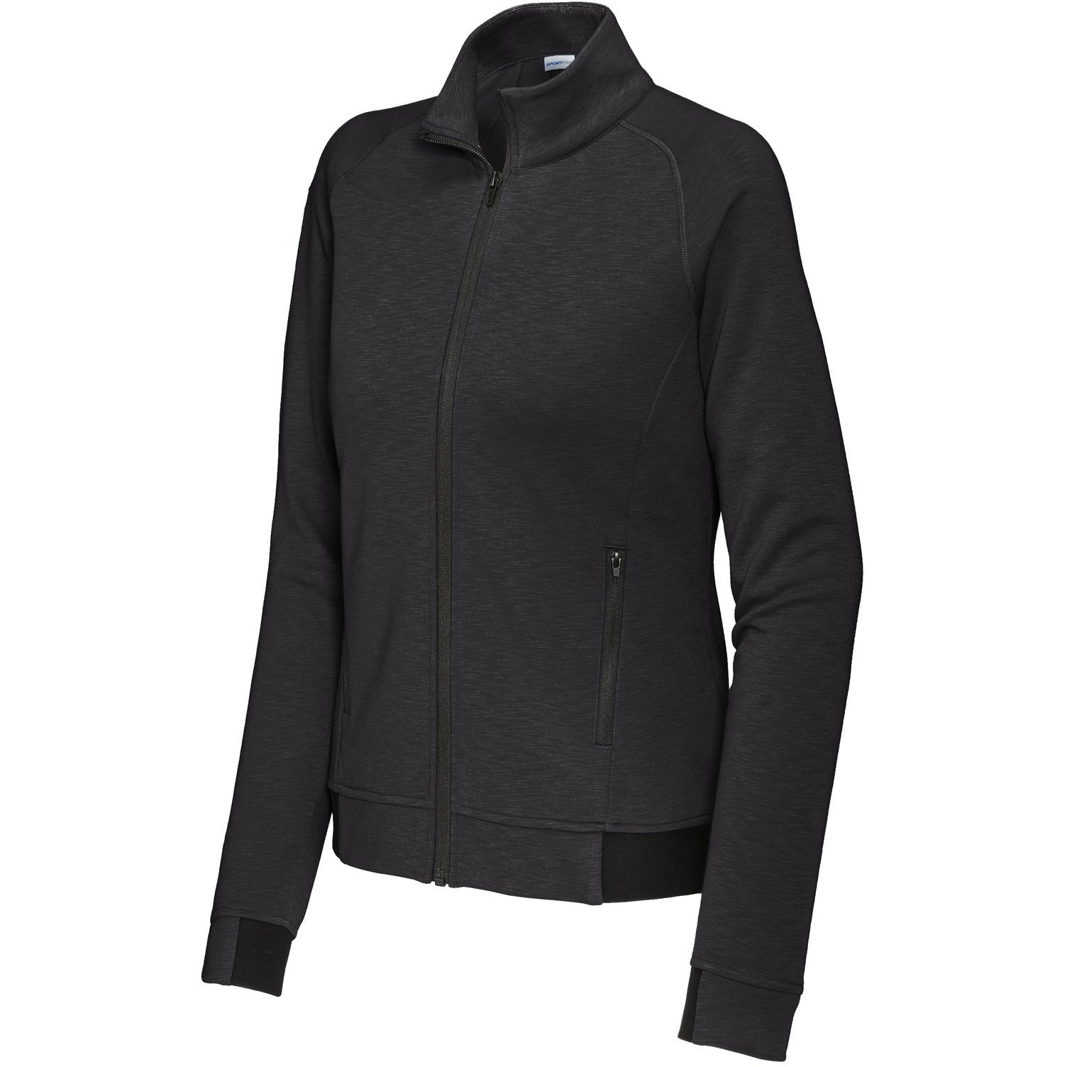 Achieve what you strive for in this elevated, moisture-wicking style that has a soft, natural hand and a slub appearance. PosiCharge technology keeps the colors strong and vibrant. 8.9-ounce, 90/10 poly/cotton fleece Tear-away removable label Cadet collar Raglan sleeves with coverstitching Zippered side pockets Half elastic, half self-fabric cuffs and hem for comfort Dart detail on back