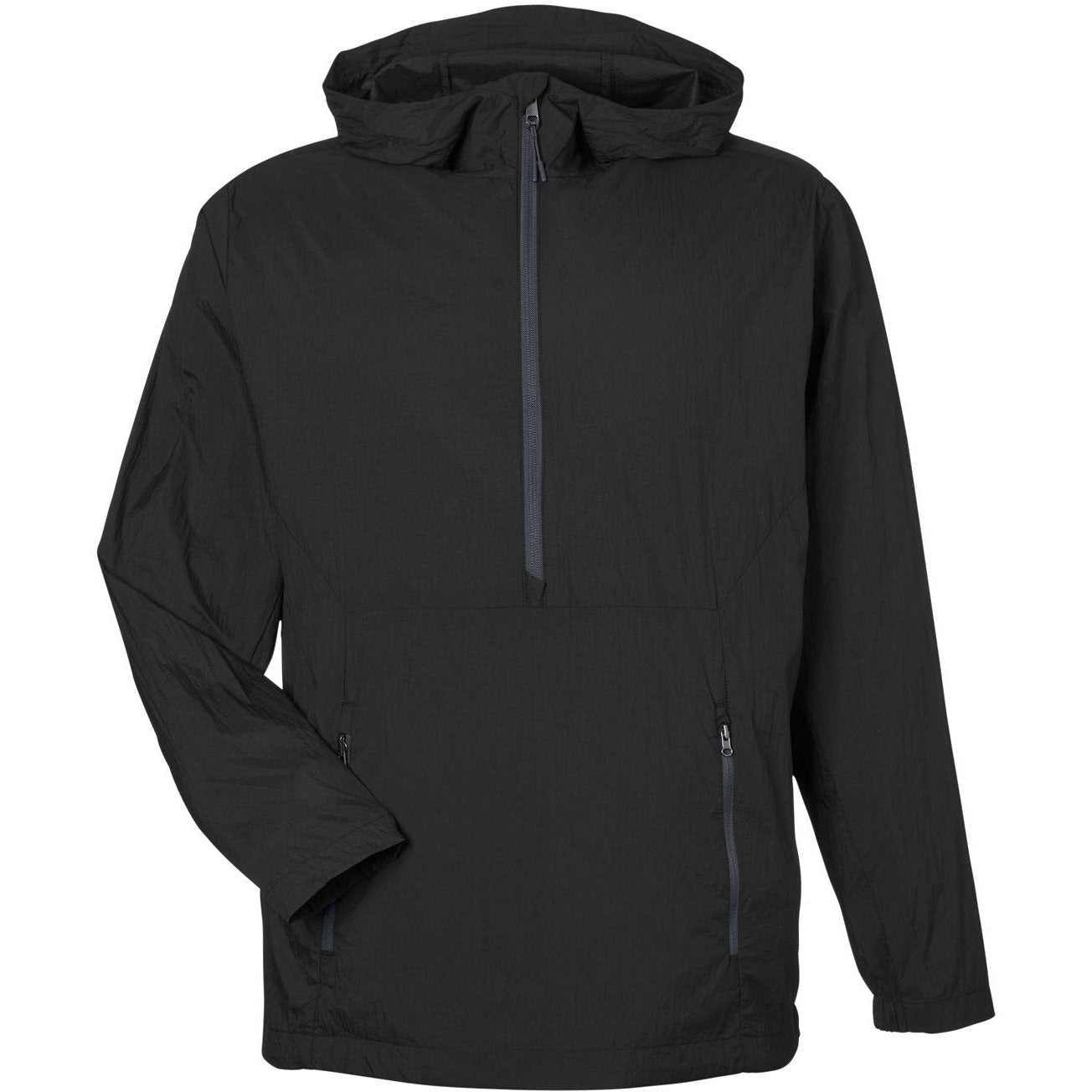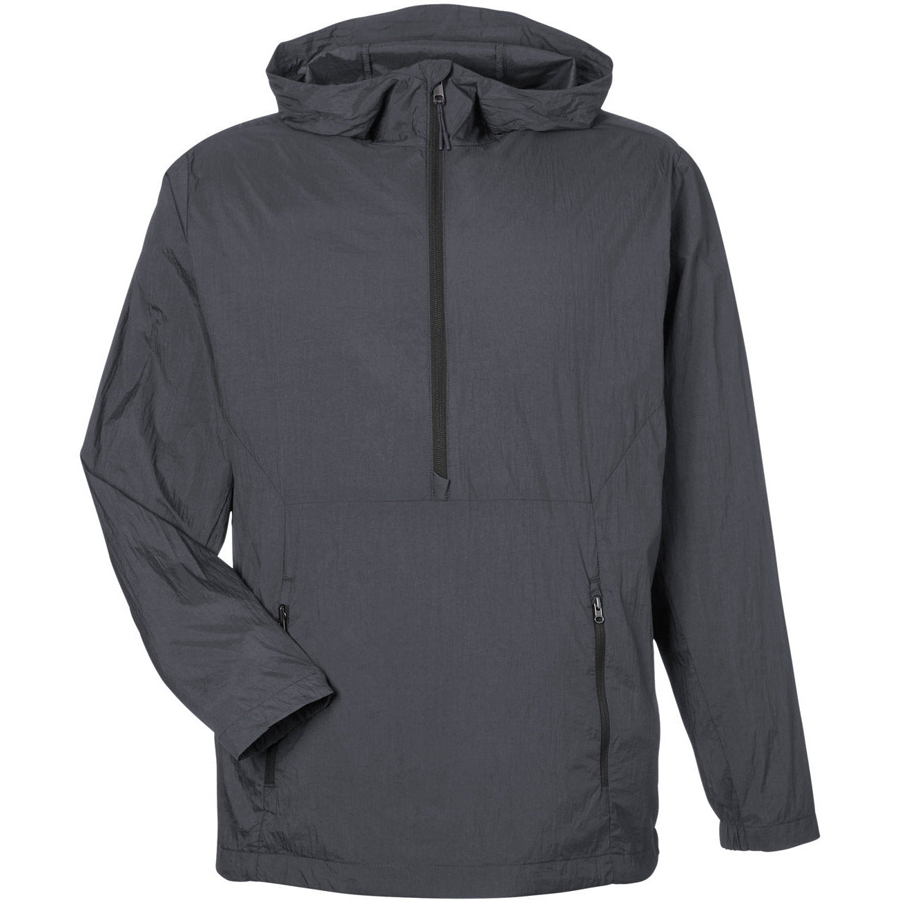 1 oz/yd² / 39 gsm, 100% recycled nylon; Water-repellent; Three-piece hood with brim detail; Self-fabric chinguard; Contrast center front reverse coil zipper with autolock slider and toggle; Lower zippered pockets with zipper garages; Packable style into self pocket bag; Partial encased elastic cuffs; Shockcord at hood and hem