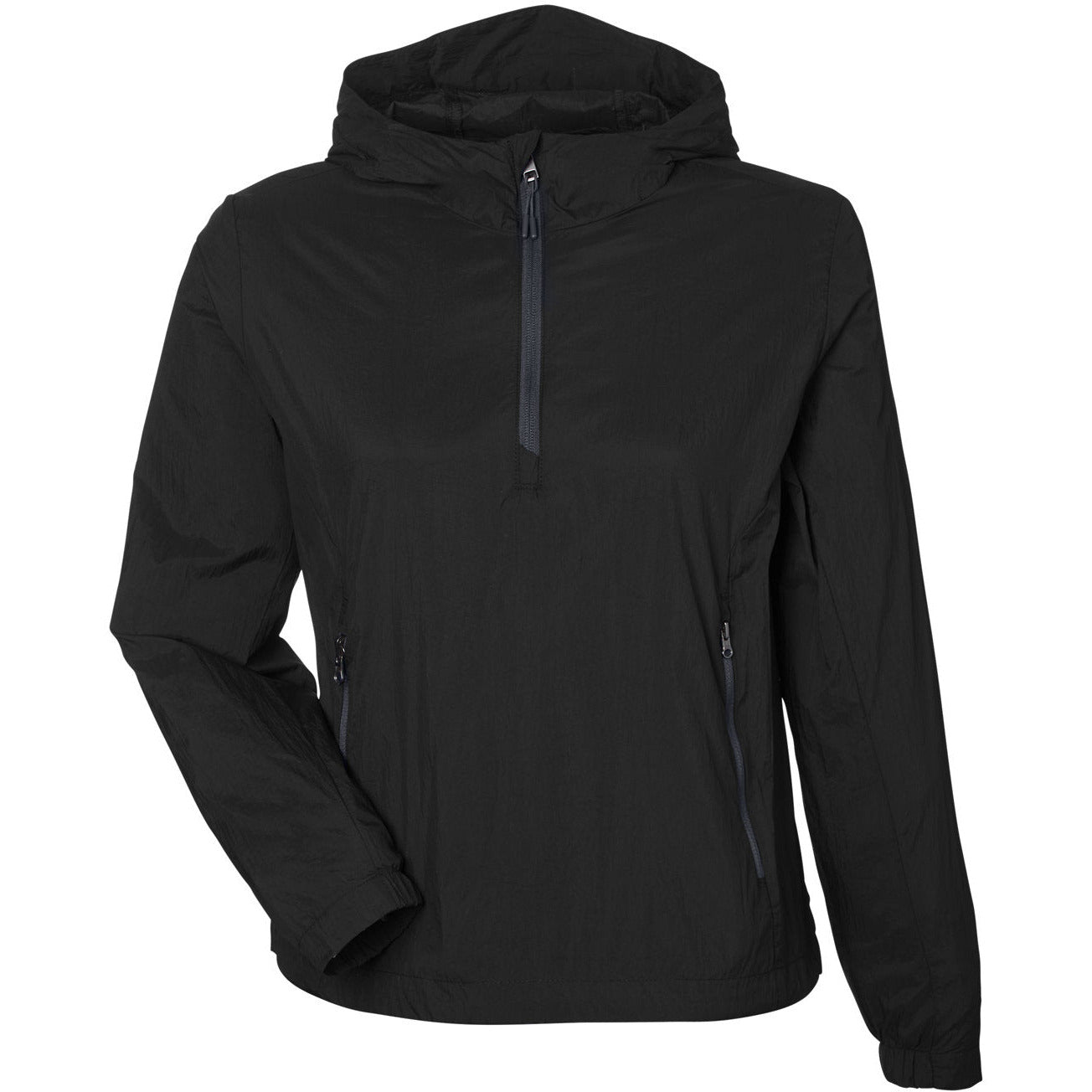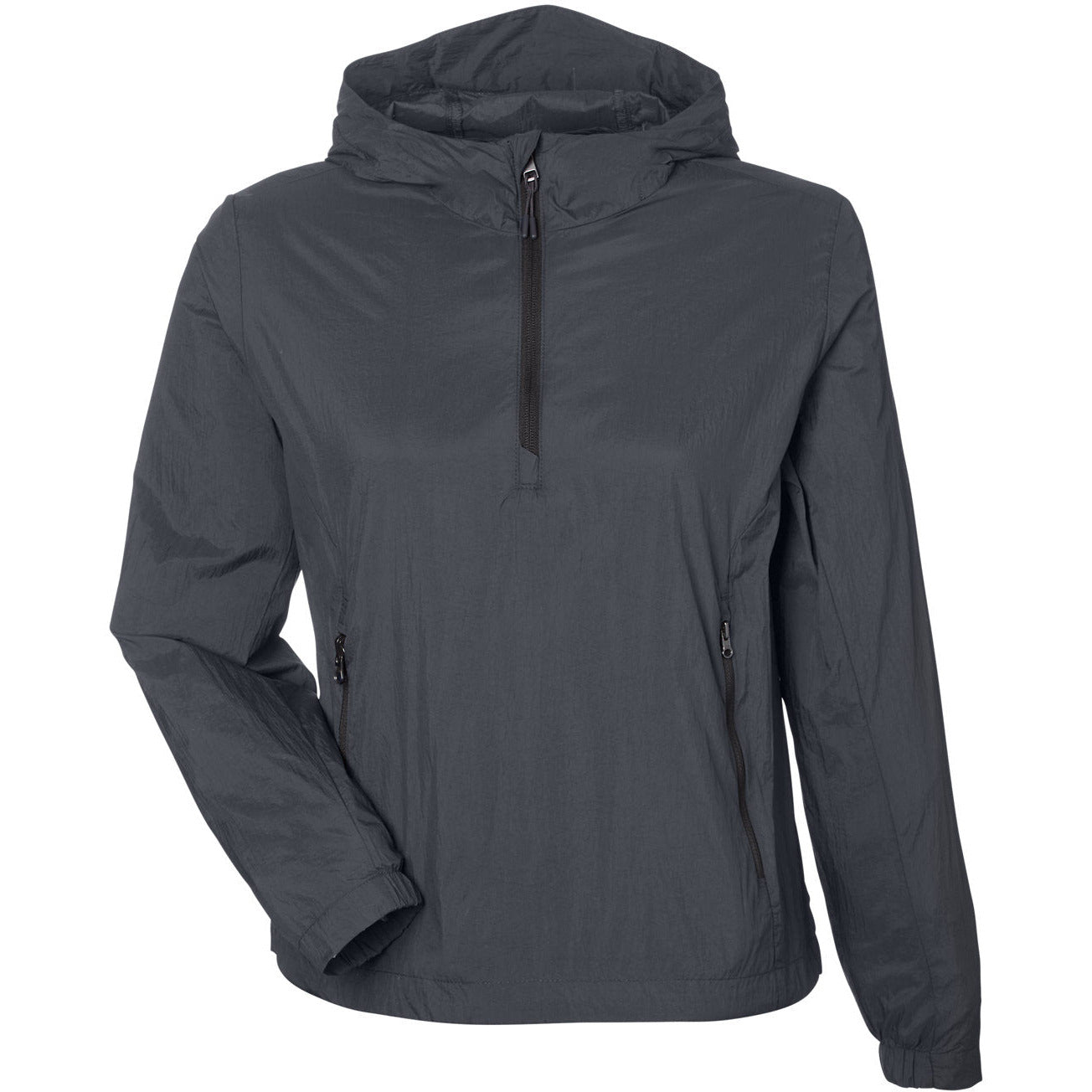 1 oz/yd² / 39 gsm, 100% recycled nylon; Water-repellent; Three-piece hood with brim detail; Self-fabric chinguard; Contrast center front reverse coil zipper with autolock slider and toggle; Lower zippered pockets with zipper garages; Packable style into self pocket bag; Partial encased elastic cuffs; Shockcord at hood and hem