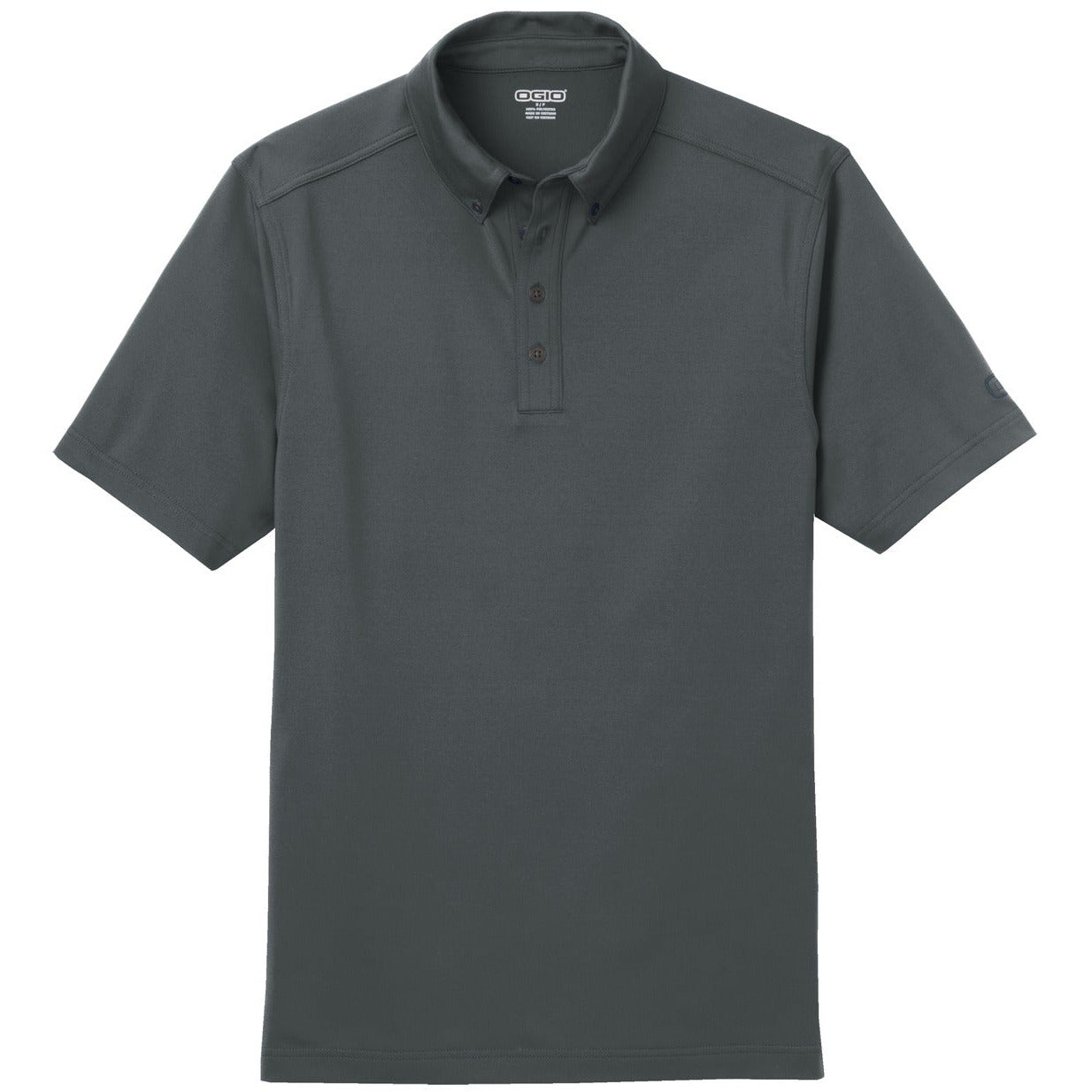 Buttoned-down doesn't mean boring in this stretch, energized polo. | 5.9-ounce, 94/6 poly/spandex jersey with stay-cool wicking technology OGIO heat transfer label for tag-free comfort Self-fabric button-down collar with collar stand 4-button placket with metal buttons Box pleat on back Button on back of collar Double-needle stitching detail throughout Set-in, open hem sleeves Heat transfer rubber OGIO badge on left sleeve Side vents
