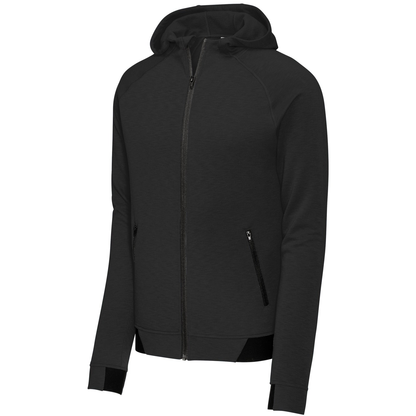 Achieve what you strive for in this elevated, moisture-wicking style that has a soft, natural hand and a slub appearance. PosiCharge technology keeps the colors strong and vibrant. 8.9-ounce, 90/10 poly/cotton fleece Tear-away removable label Three-panel hood Raglan sleeves with coverstitching Zippered side pockets Half elastic, half self-fabric cuffs and hem for comfort