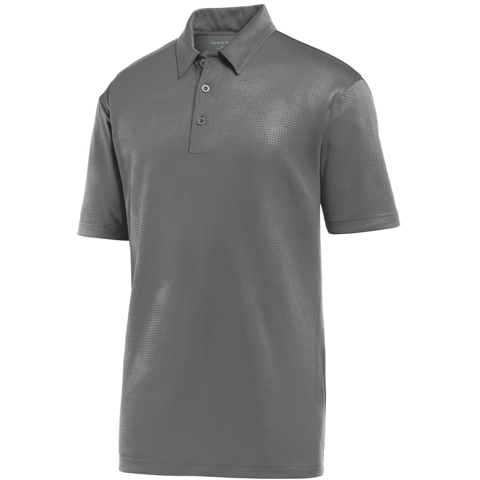 Tough enough to conquer moisture, snags and color bleed, this smooth polo also features a subtle, allover embossed geometric pattern. 4.7-ounce, 100% polyester jersey with PosiCharge technology and embossed pattern Self-fabric collar Tag-free label 3-button placket with dyed-to-match rubber buttons Set-in, open hem sleeves If applying sublimation, special care must be taken throughout the process. Contact your decorator for more details.